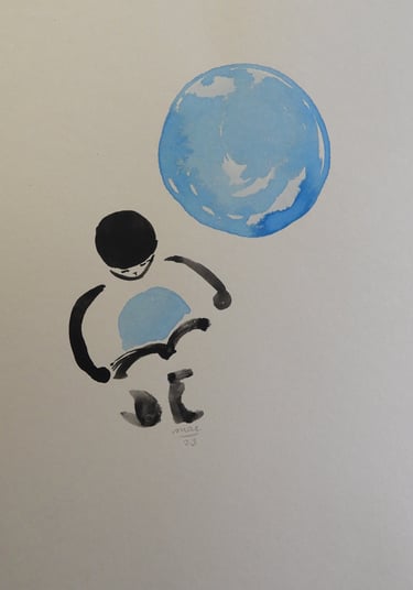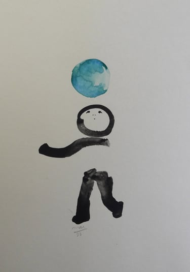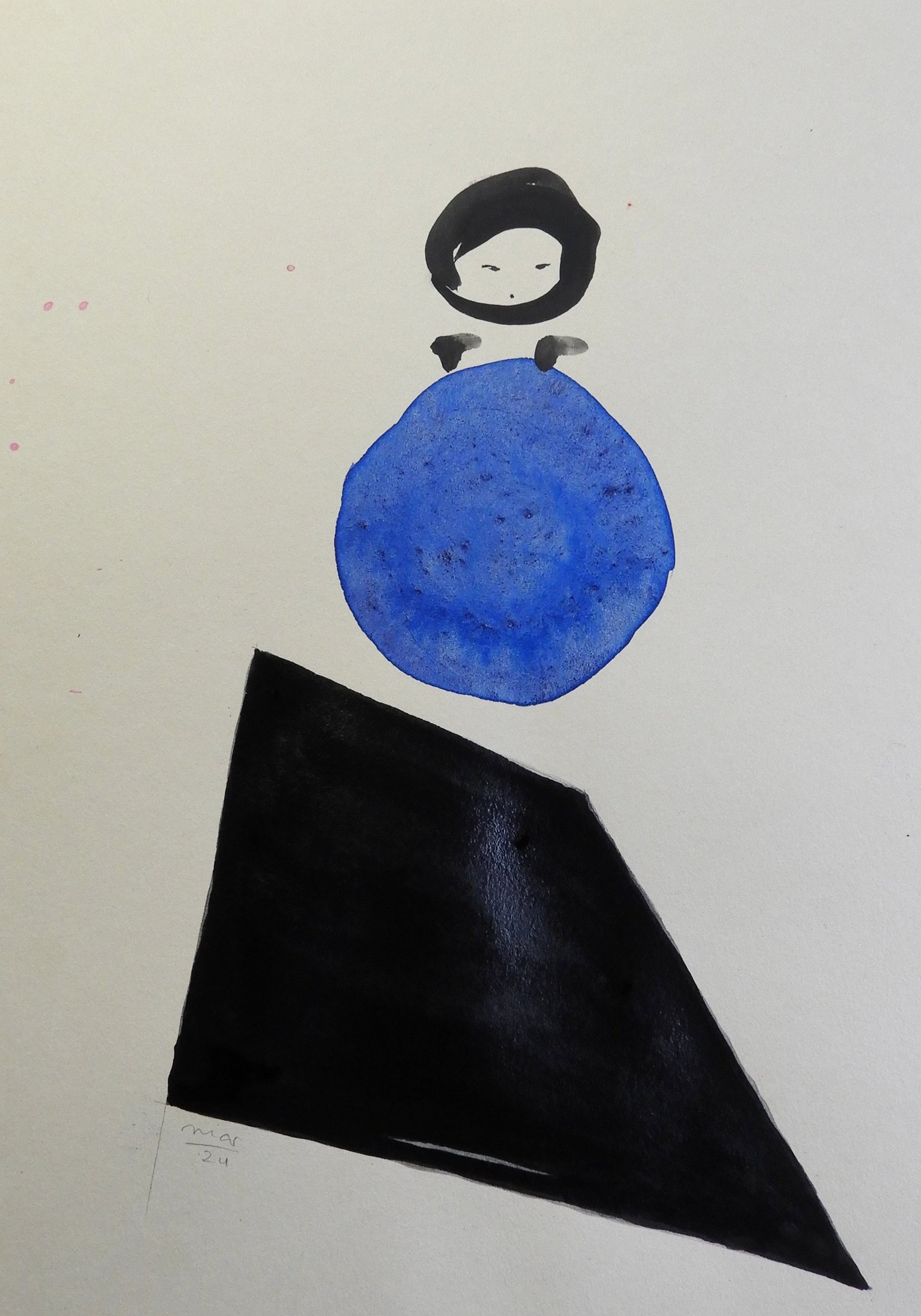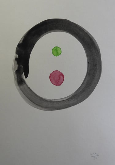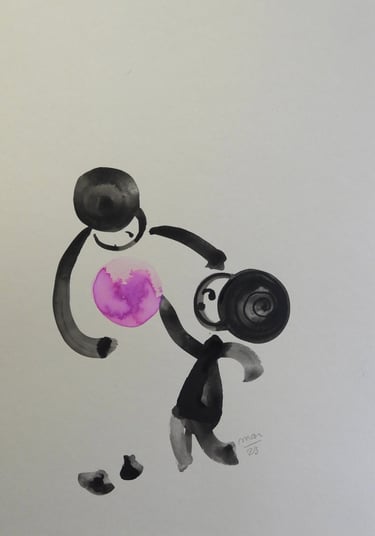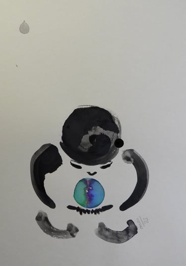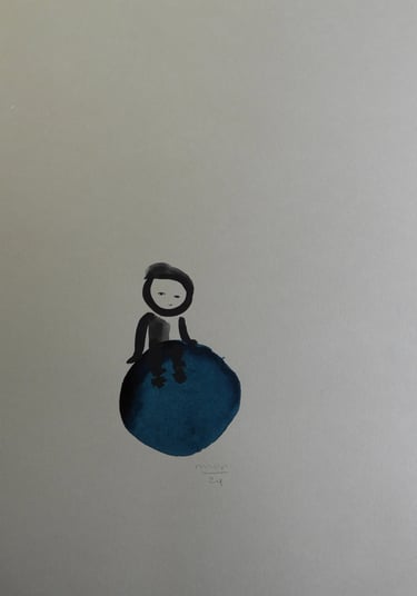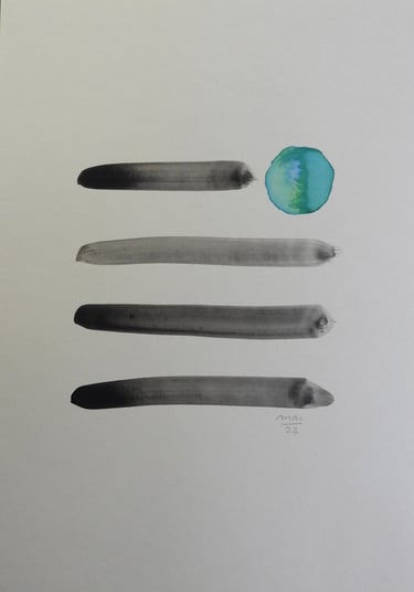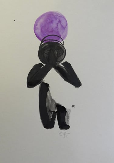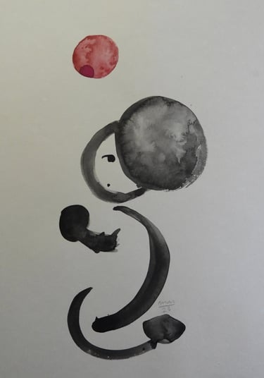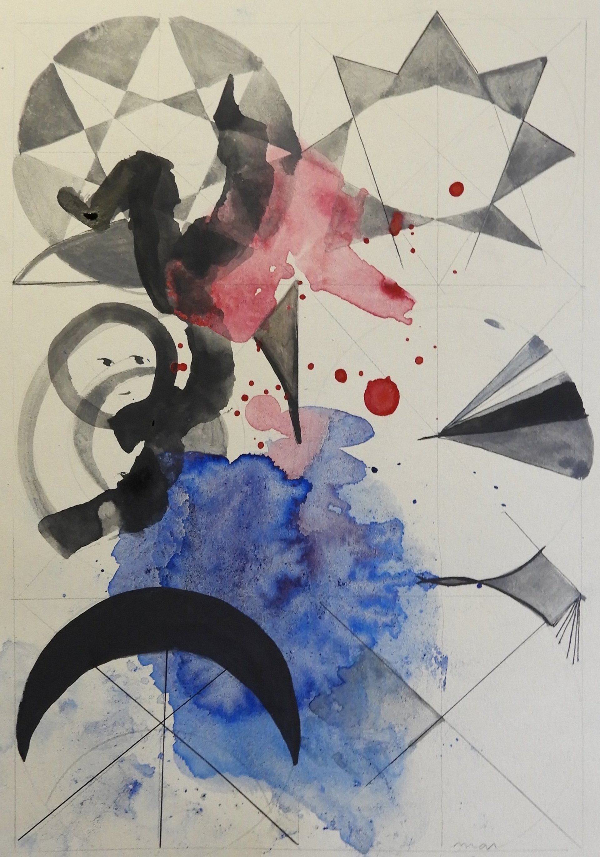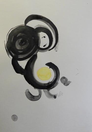 A ambiguidade da forma agrada-me, o contraste entre a linha definida da tinta da china e a mancha da aguarela captam e integram para mim, a dualidade entre os mundos material e imaterial.